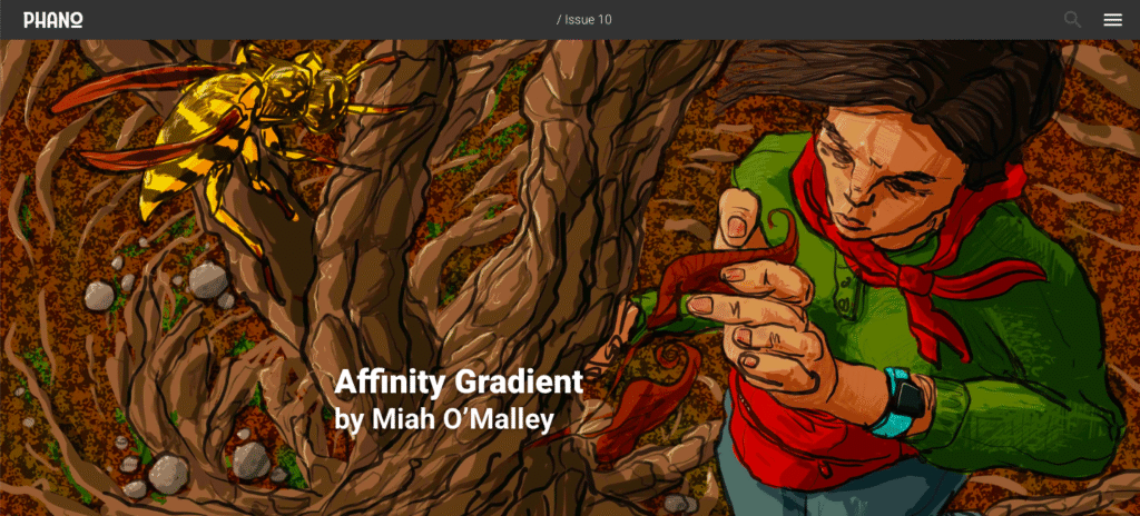 “Sleepholder”, Radon Journal – Issue 11 “We Were Home”, Tethered Literary – Summer 2025 “Glimmer Year”, Exposed Bone III “Affinity Gradient”, Phano issue 10 “The Water’s Country“, Phano issue 14 “The Abandoned Planets of Aediama“, Professor Feiff’s Trans-Dimensional Travelogue